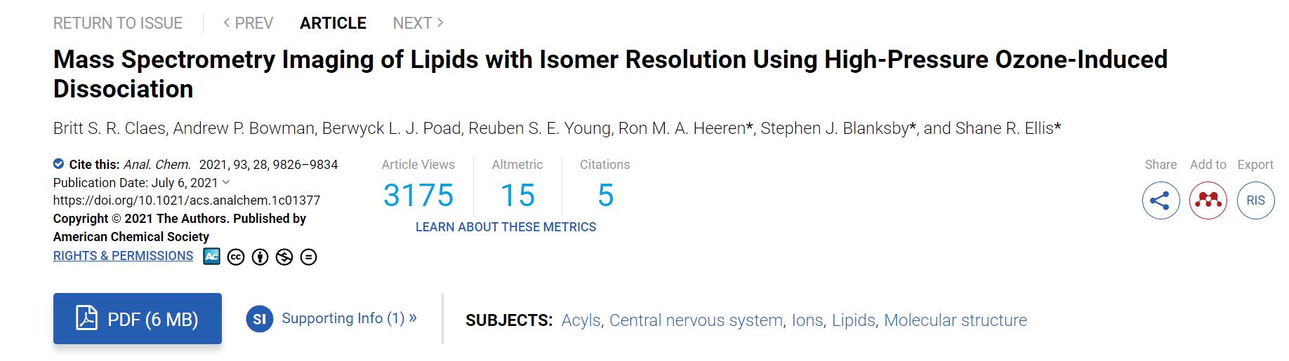 使用美國(guó)2B 106-L的論文:使用高壓臭氧誘導(dǎo)解離的異構(gòu)體分辨率的脂質(zhì)質(zhì)譜成像